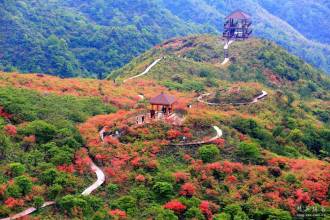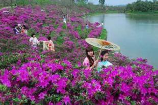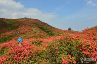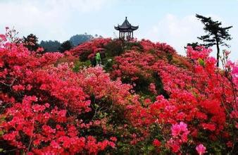 百里杜鹃镶满岭,嫣红姹紫引人游。