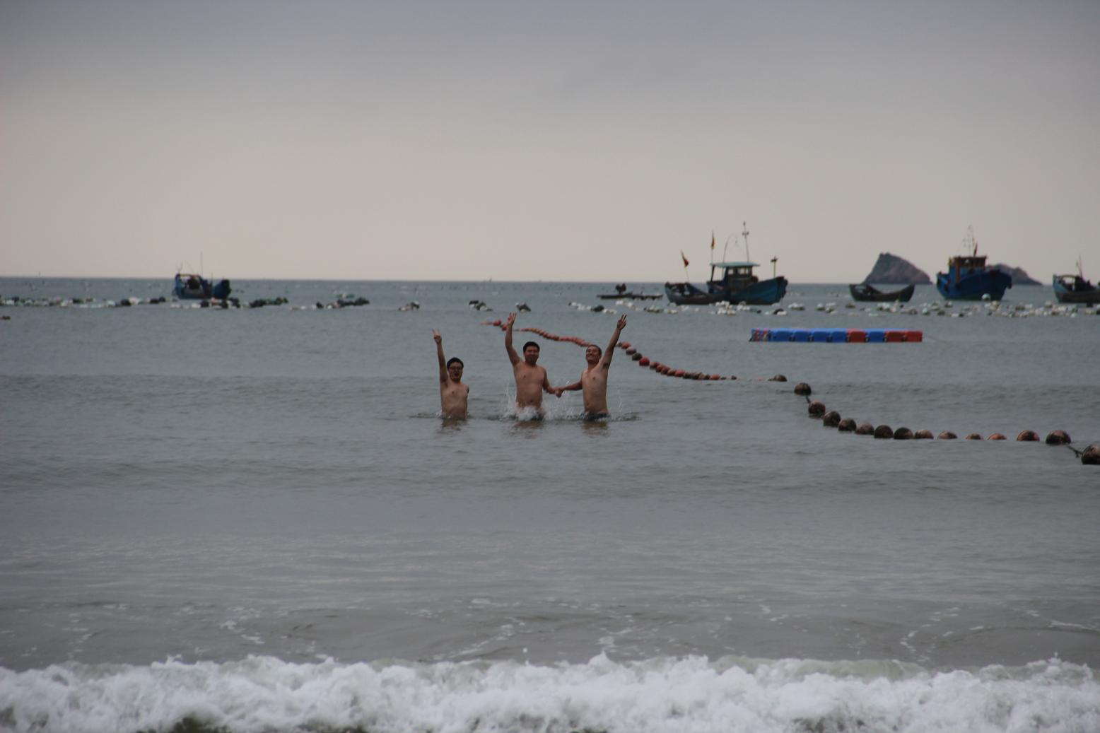 勇士们下海了,海水还是挺冷的