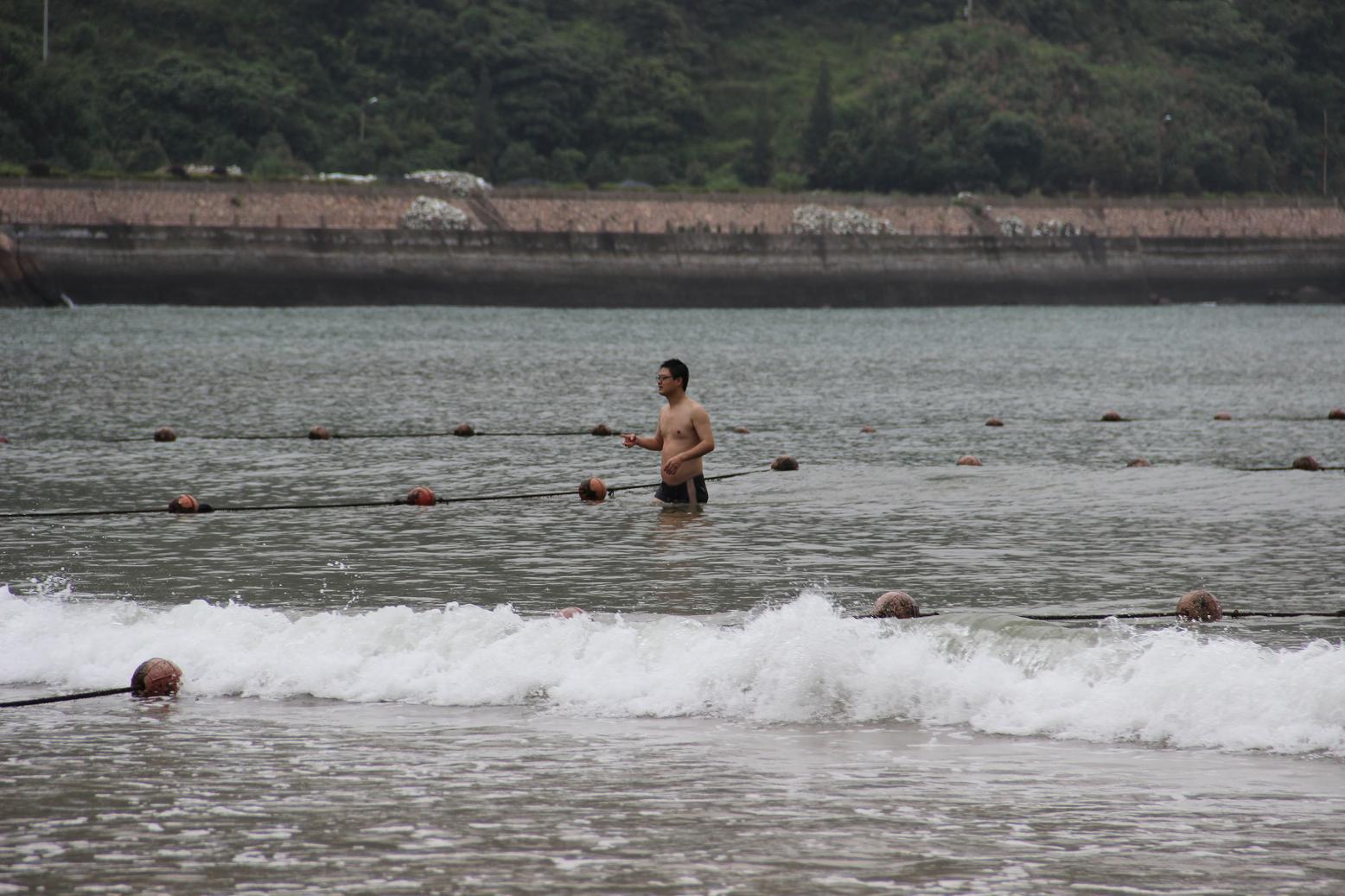 海水清澈,就是水温低了点,再过几天就好。