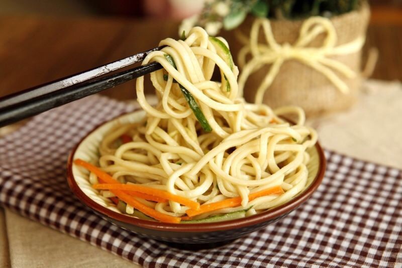 原料:面条,花椒,胡萝卜,黄瓜(随便什么蔬菜都可以)