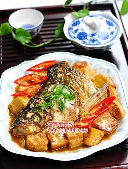 做法:1)锅烧热,放入1大匙油烧热,放入沥净水的豆腐块小火慢煎。2)中途用筷子翻动,让四面都煎成金黄色。3)热锅热油,放入擦干水份的鱼头小火慢煎。4)煎完一面后,反面煎并放入姜片同煎,煎好后加入清水煮开。5)加入煎好的豆腐及所有调味料,大火煮开后转小火。6)最后加入青葱段及水淀粉勾芡,装盘后表面摆上红椒装饰。