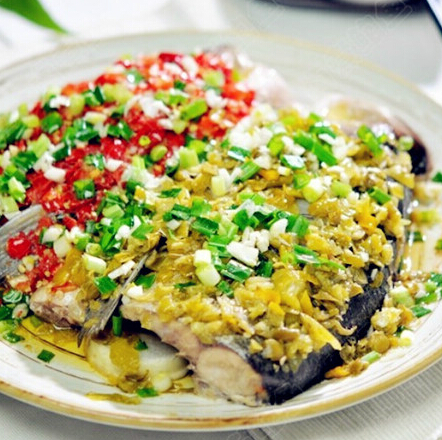食材:950克草鱼、350克酸菜、15克辣椒、10克蒜、10克姜