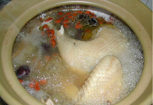 2、做法:将配料放入汤煲中,放约2汤碗水,煲浓。