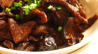 原料:干香菇200克、冻豆腐250克、油、生抽、老抽、盐、白糖、小葱