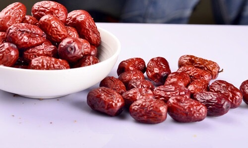 枣,又称红枣或大枣,含蛋白质、有机酸、糖类及多种维生素、微量元素。早在《内经》中就有“枣为脾之果,脾病益食之”的说法。《中国药植图谱》有枣能治过敏性紫癜病、贫血及高血压的记载。枣既有丰富的营养,味美可口,又是治病良药,适宜一切虚症,有补气血、健脾胃、增强机体免疫力之功效。