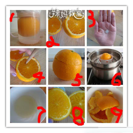 【盐蒸橙子治疗咳嗽 放倒一切止咳药消炎药】1洗净。2切开。3橙肉撒少许盐。4 筷子插几下,盐更容易渗透。5盖上“橙盖”。6放小碗内保持橙身竖立,蒸10-15分钟(水沸开始计时)。8去皮吃肉喝汁(包括碗里的精华)婴儿和大人均可