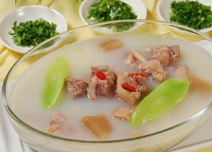 原料:鸡1只、山药2根、油、盐、姜片、枸杞、胡椒粉、小葱。