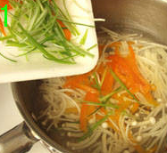 2、葱丝可以多一点,但汆烫的时间不要久,以免太软发黄;