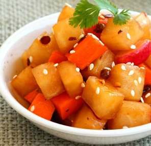 调料:醋、生抽、糖、梨汁(2:1:2:1)、鸡精、香油
