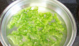 3、苦瓜焯水的时间不宜过长(30秒),否则苦瓜将变软,颜色变黄,营养流失,重要的是食之不脆口;