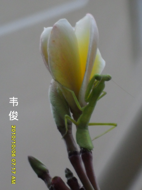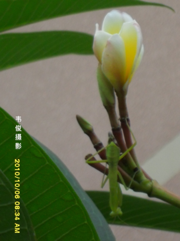 这是螳螂和鸡蛋花?第ー次见!很美