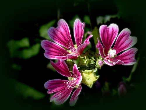 淡紫浅红风雨过,深心雄蕊露霜来。