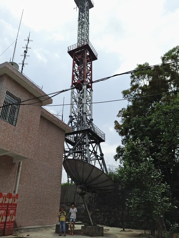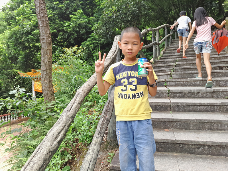 努力爬了半天,边休息边鼓励孩子,终于走到了最高点,揭西电视台的电视塔