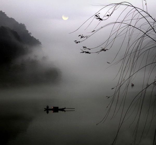 混沌不堪乌气走,愁容半月对渔灯。