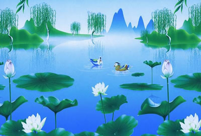 翠柳依依舒丽影   清荷袅袅绽奇葩