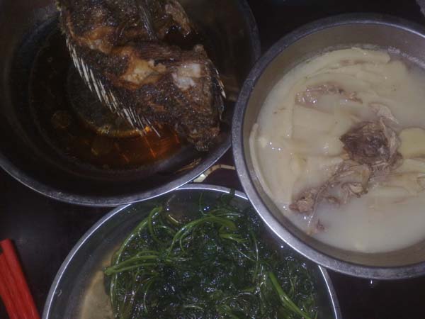 喔,那鱼是昨晚在朋友的鱼塘里钓的非洲鲫
