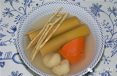 做法:将配料放入汤煲中,放约2汤碗水,煲浓。