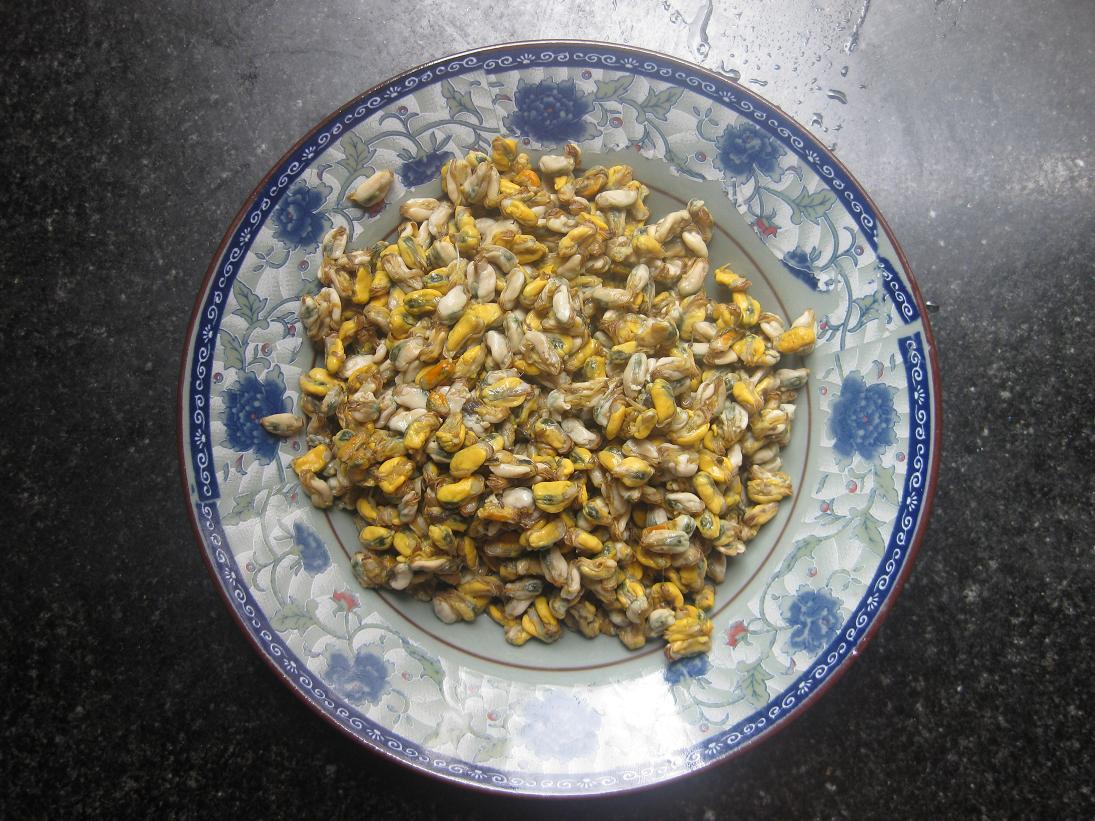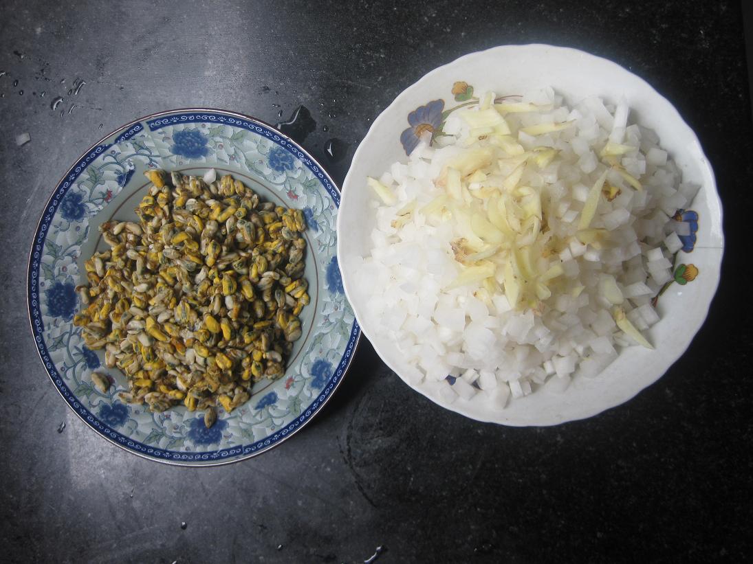 备料:泥肉(方言)是一种海里的小贝壳剔出来的肉