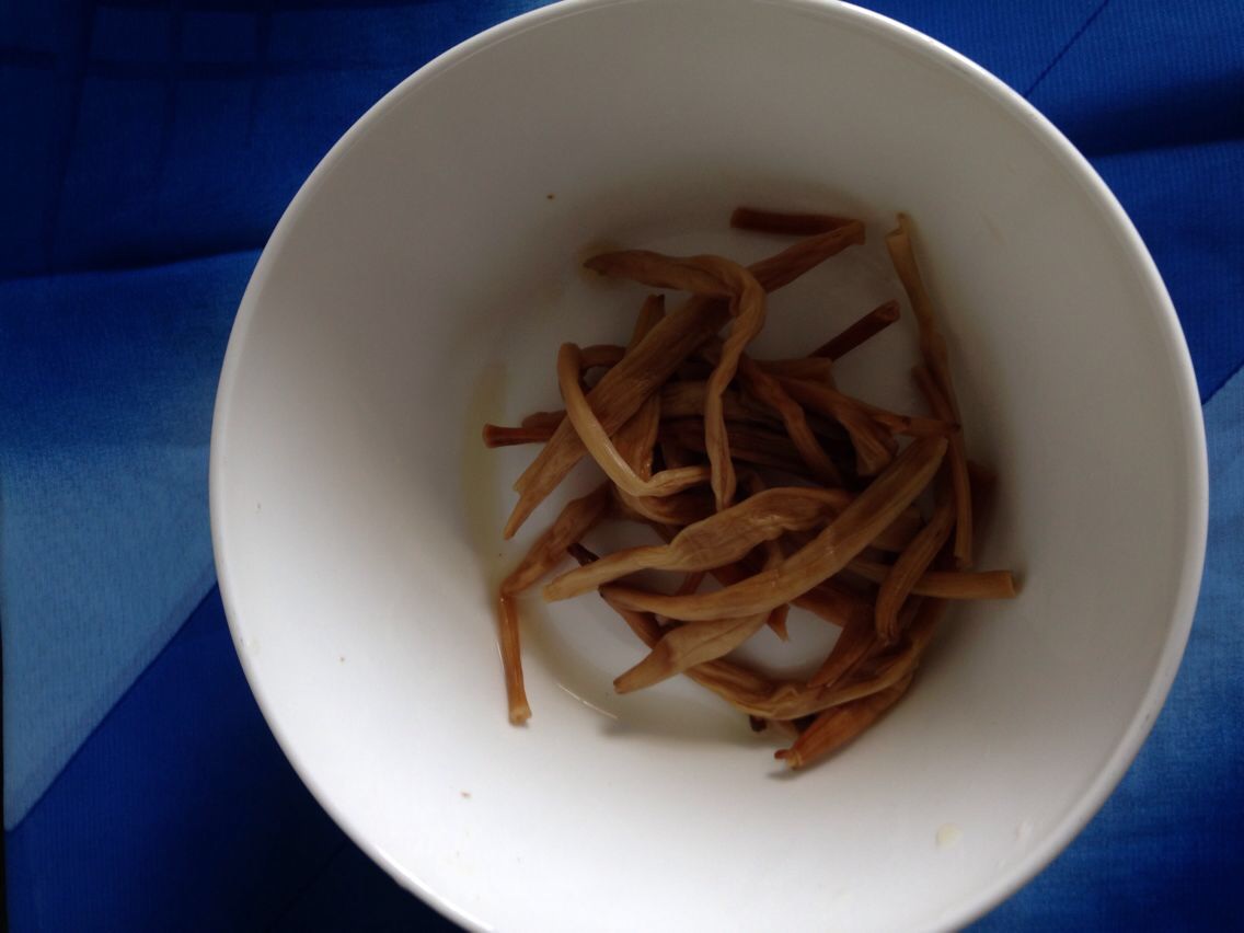 1)将西红柿去皮切块,黑木耳,黄花菜,香菇泡发洗净