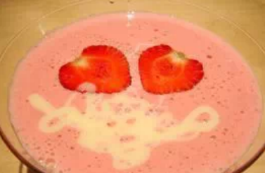 ① 将草莓(225克)、豆腐、蛋白、鲜奶全放入搅拌机内拌匀,取出后混和