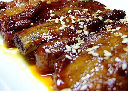 6、待油锅内汤汁粘稠时,排骨入锅翻炒至挂汁后,撒熟芝麻关火。