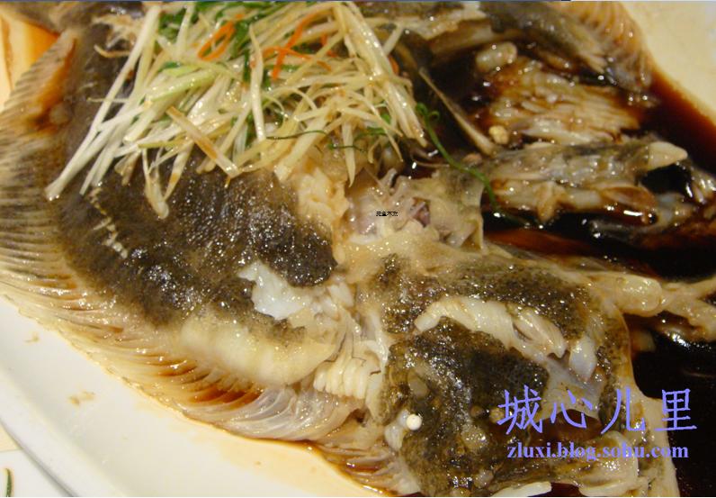 4、第5张图像清蒸比目鱼,熟透后去汁,再淋上酱油,撒上葱白段,热油淋泼提香