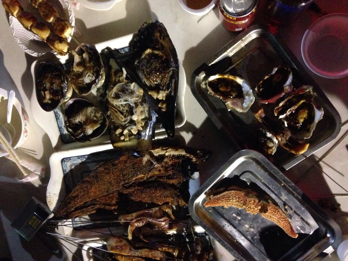 生蚝,烤鱼,还有叫不上名字的蚌类