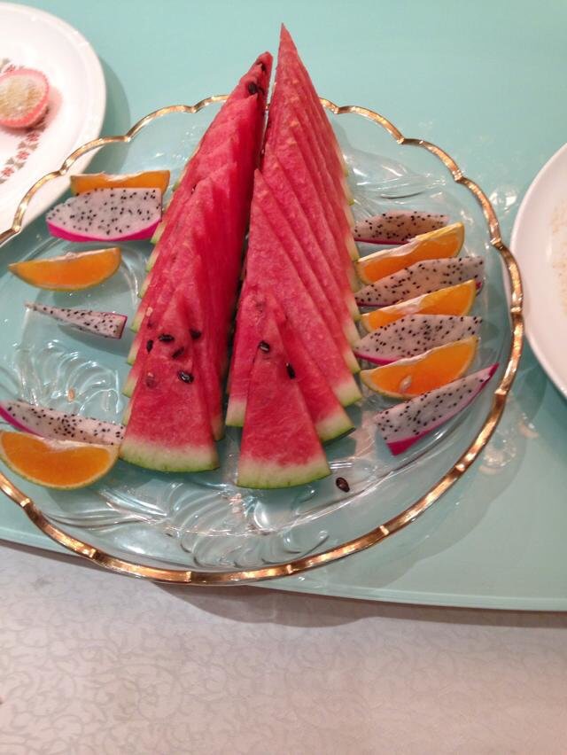 最后,饭店经理走到我面前,很有礼貌的对我说,送你一个水果拼盘,这一大盘咋吃呀。