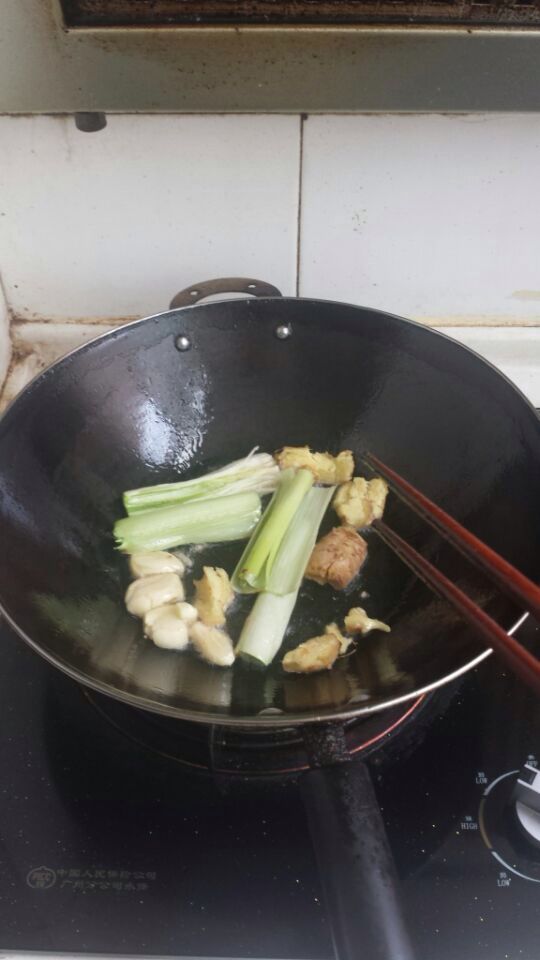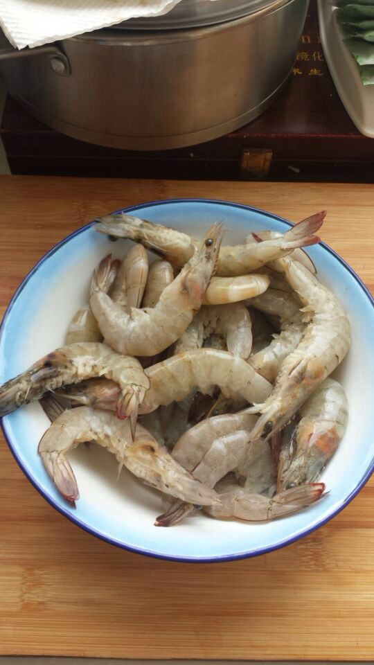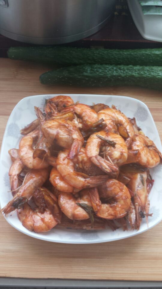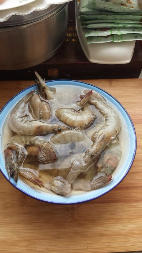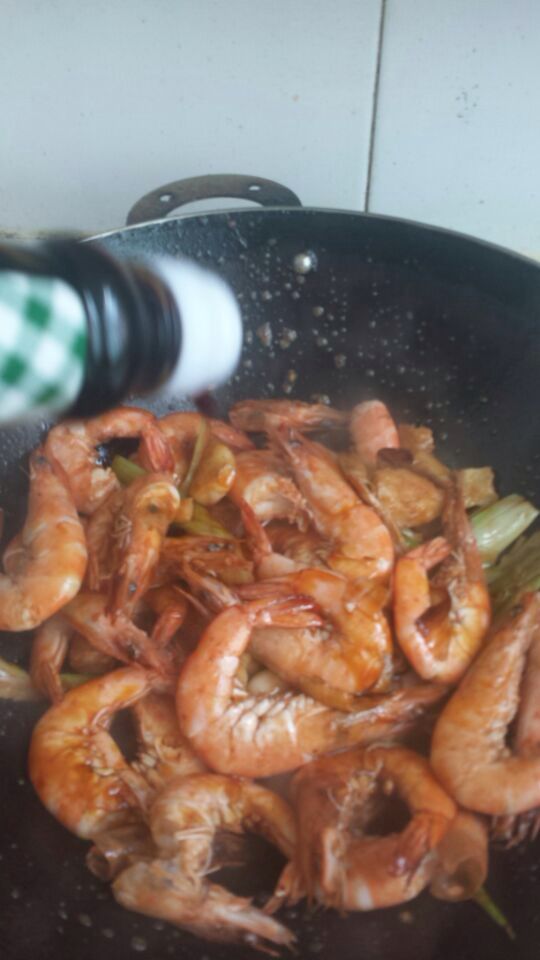 原料:虾,葱,姜,蒜,海鲜酱油,盐,茶