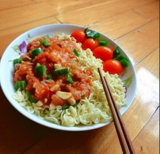 6、煮泡面的时候可以加个番茄切碎放进去煮或者直接丢适量的番茄酱。好吃到升天。特别是某款酸菜泡面。