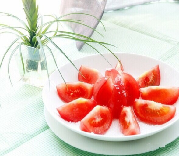 7、西红柿凉拌加点果粒橙再放冰箱冷藏,秒杀一切饮料有木有~