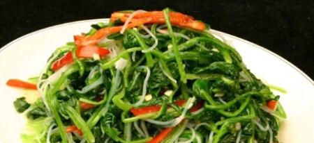 原料:鲜油菜二斤 精盐五钱 椒油五钱 姜三片葱一钱