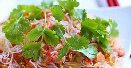制法:先将粉丝用开水泡软,切成二寸长的段放盘内。用碗一只,放入酱油、醋、白糖、味精和冷开水五钱,调成卤汁,浇在粉丝上,撒上花椒粉,淋入辣椒油,拌匀即成。此菜是四川风味,味重麻辣,佐酒最宜。
