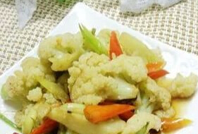 原料:菜花二斤 精盐五钱 椒油五钱 葱花一钱姜二钱