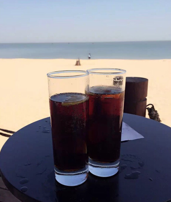 走在柔软的沙滩上,一辆沙滩车从我们身边飞驰而过,泛起的沙浪溅了我俩一身,看着沙滩车上兴高采烈的人们,我俩也笑了。走过海边酒吧,我俩要了两杯饮料,一边喝一边欣赏着海上俱乐部活动。就这样一个下午很快就过去了。