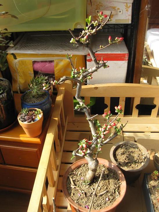 买了一颗小茶花(有点小花蕾)和几株小的海棠(快发芽了)养起来