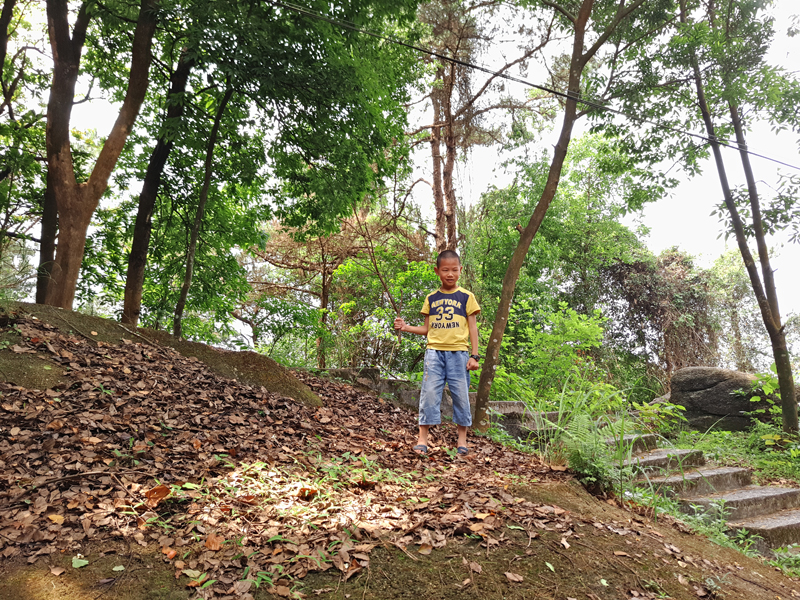 努力爬了半天,边休息边鼓励孩子,终于走到了最高点,揭西电视台的电视塔