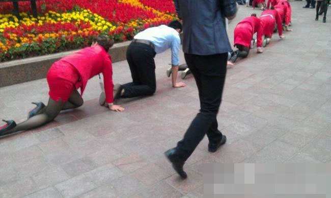 老板对工人训斥(不想干就滚蛋,像你这样的人马路上有的是),工人成为奴隶,两个人的工作一个人干,干不完就加班加点,这就是中国人常加班的原因,也是年轻人猝死的原因。如果员工完不业绩,员工就丧失了做人的资格,就必须接受惩罚,在门口大街上爬行。